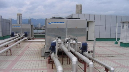 上海市复旦大学附属眼耳鼻喉科医院洁净空调部分采用三台四管制多功能冷热水机组,机组单台制冷量140RT;在2008年,bb贝博艾弗森官方网站三台高温型风冷热泵已在上海市肿瘤医院投入运行,且至今运行状况良好。因此,上海市肿瘤医院在此次改造项目中又新增两台风冷热泵,机组单台制冷量100RT。为了控制医院以及周围居民环境噪音,两家医院此次均采用超低噪音型机组,比传统风冷热泵低10分贝。